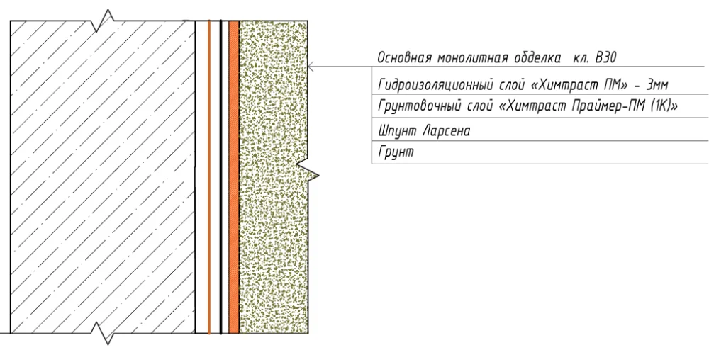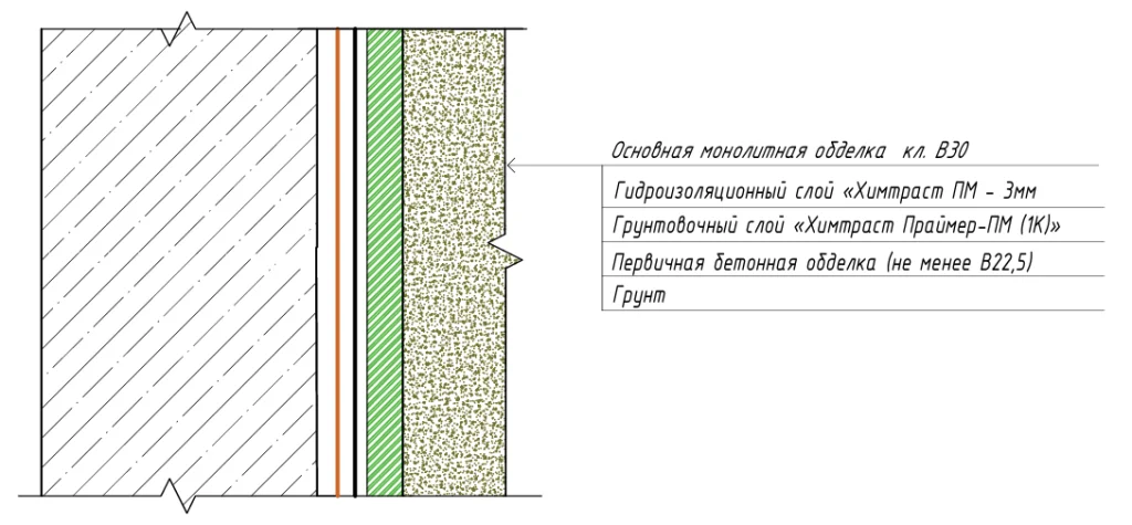 Рисунок 2 — Устройство гидроизоляционной системы «Химтраст ПМ» методом «стена в грунте»