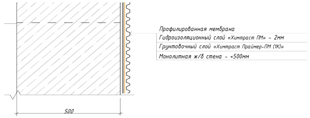 Рисунок 1 — Устройство гидроизоляционной системы «Химтраст ПМ» по системе изоляции открытым способом